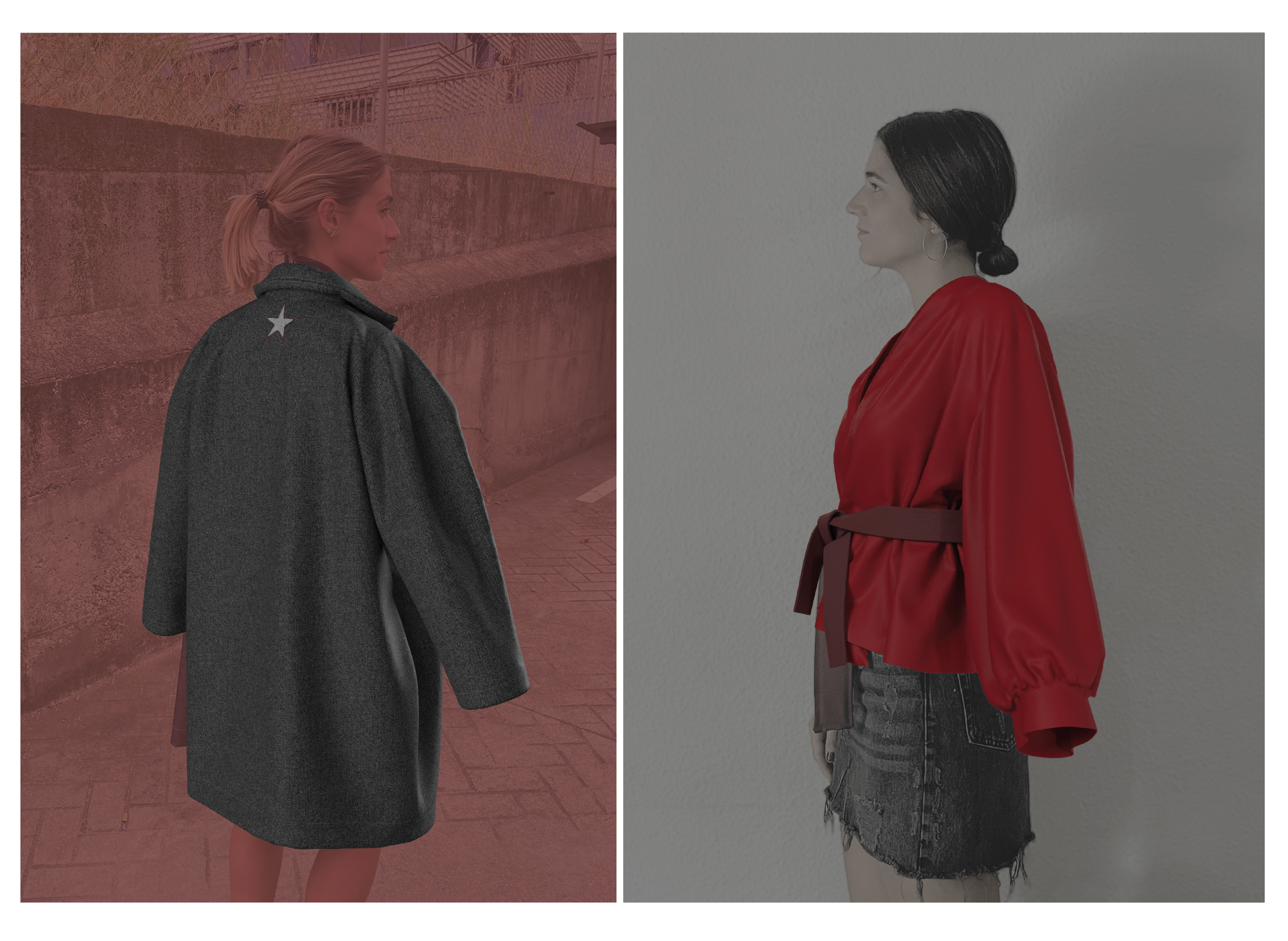 This project compares a blue coat and a red blouse, each with its physical and 3D digital models. It focuses on how their materials, textures, and designs translate from the physical to the digital world, aiming to understand how digital fashion tools can replicate these details while preserving the original design.